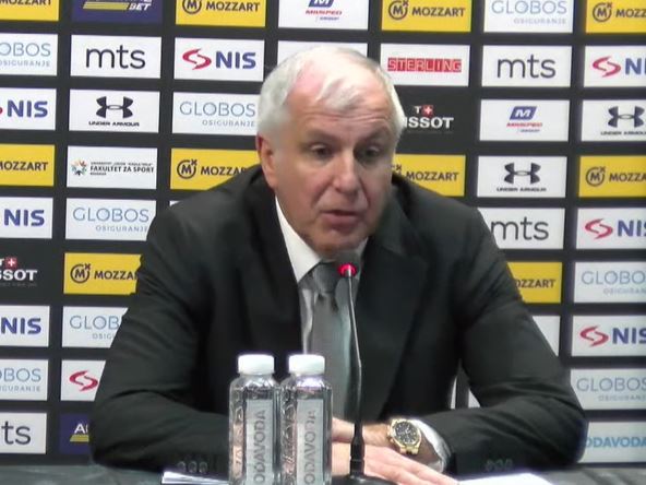 Bio je vidno ljut zbog igre pojedinaca, dao je šansu svima, ušao je i Vladimir Brodzijanski, a do potpunog opuštanja došlo je u završnici. "Najavili smo da igramo protiv tima koji je u dobroj formi i koji dobro igra u ABA. Agresivnošću smo uspeli da odigramo dobar meč 35 minuta, ovo poslednjih pet minuta. Nema razloga to da komentarišem. Čestitam igračima na dobrom meču i hvala svima koji su bili u dvorani", počeo je Obradović.