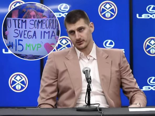 Na meču koji je Denver izgubio od Orlanda, Kejti je primetila transparent na kojem su bili inicijali Nikole Jokića, njegov broj 15 i natpis MVP uz brojku tri, koja sugeriše da će i ove sezone biti najbolji u ligi. Pored toga, ova parola imala je i stih koji Kejti nije mogla da prepozna, ali su joj zato pratioci na tviteru objasnili šta znači "U tem Somboru svega ima".