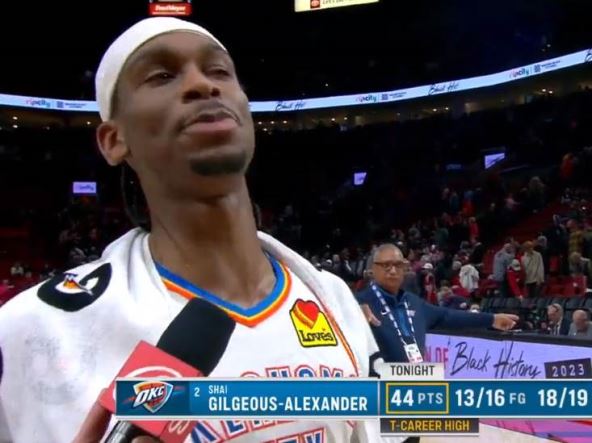 Oklahoma nastavlja da "tankuje" i da trejduje svoje igrače za pikove, a u poslednjem meču uspeli su da savladaju Portland 138:129 uz fantastičnu partiju Šeja Gildžusa Aleksandera. Kanađanin je ubacio 44 poena uz 7 asistencija, a uz to je imao neverovatan šut - 13/16 za dva i 18/19 sa linije penala.