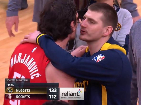Zemljaci su bili rivali na drugom kraju sveta, ali tradiciju nisu zaboravili. Kamere koje su pratile meč zabeležile su i pozdrav dvojice srpskih košarkaša, tradicionalni pozdrav odnosno tri poljupca u obraze. Ovo je već postala tradicija naših košarkaša u NBA ligi, a nakon prethodnog duela Denvera i Hjustona ovako je želeo da se pozdravlja i Deandre Džordan. Pogledajte pozdrav srpskih igrača:
