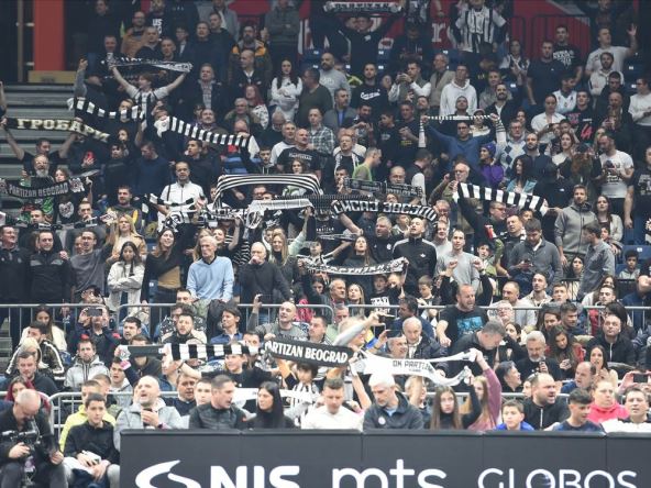 Dan pred 169. "večiti derbi" Crvena zvezda - Partizan, navijači crno-belih istakli su transparent u Štark areni, na utakmici košarkaša Partizana protiv Albe. "I kada krene sve po zlu i kada loša uprava je tu! Svi u rupu!", pisalo je na transparentu nedaleko od terena na kojem je ekipa Željka Obradovića ostvarila ubedljivu pobedu protiv Nemaca.
