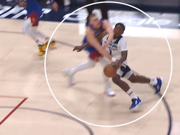 Dvostruki uzastopni MVP NBA lige je udario Entonija Edvardsa sa obe ruke u grudi! On je kasnio na preuzimanju brzog beka Timbervulvsa, a onda je neoprezno ispružio ruke ka Edvardsu u nameri da ga zaustavi u prodoru. Ipak, nije dobro procenio njegovo kretanje i obe ruke su završile na gruduma beka Minesote koji je pao kao pokošen. Pogledajte taj momenat: