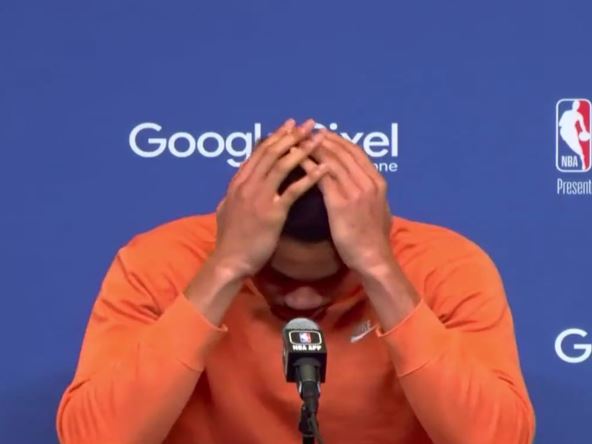 Tako je jedan od trojica kandidata za MVP nagradu dobio "šamar karijere", pa nije iznenađenje što je prvo pitanje novinara na konferenciji posle utakmice bilo da li je čitava sezone sada neuspešna zbog poraza u prvoj rundi plej-ofa. I to se nimalo nije dopalo superstaru iz Grčke...