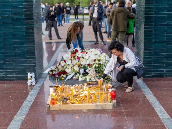 Ispred jednog ulaza u "Beogradsku arenu" navijači su palili sveće i ostavljali cveće u spomen žrtvama masakra koji se desio u centru Beograda.
