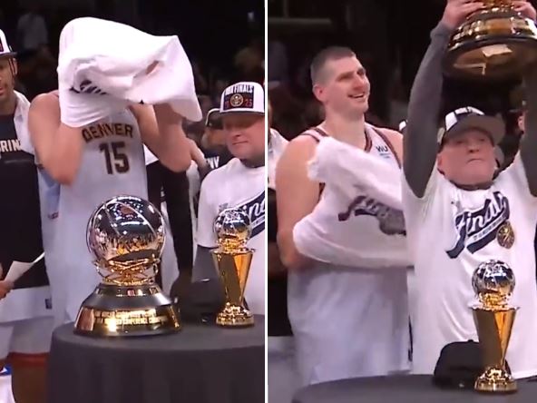 Pošto je jasno da mu u NBA ligi nema ravnog, srpski centar bi mogao da se posveti oblačenju majice! Tokom proslave nakon pobede nad Lejkersima nastao je hit snimak u kojem je srpski košarkaš u centru pažnje. Njemu nekoliko pokušaja nisu dovoljni da obuče šampionsku majicu, pa je na kraju morao da odustane od toga i da prvo aplaudira treneru Majklu Melounu. Pogledajte te detalje: