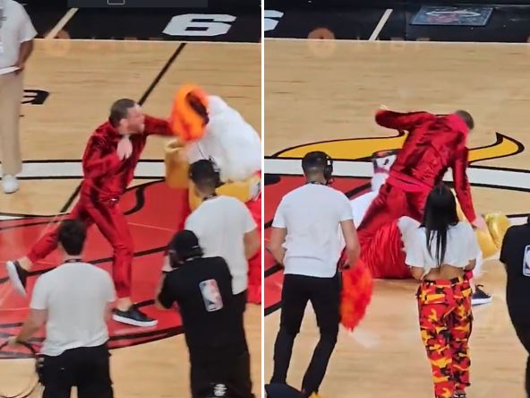 On je tokom pauze bio centralna figura na parketu hale u kojoj su igrali Majami i Denver, a tom prilikom je nokautirao i "overio" maskotu domaćeg tima. Deluje potpuno suludo kada se pročita, ali stvarno se to desilo - nekada veliki šampion UFC organizacije prebio je čoveka koji u kostimu zabavlja publiku u hali.