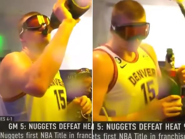 Svi su naravno, što je već tradicija NBA finala, slavili sa naočarima za skijanje. Razlog za to je činjenica da se igrači uvek prskaju šampanjcem, a to baš i ne prija očima, pa je nađeno rešenje sa skijaškom opremom, koje u Denveru ne nedostaje. Pogledajte kako se slavilo u drugom gradu u kome svi navijaju za Denver - Somboru: