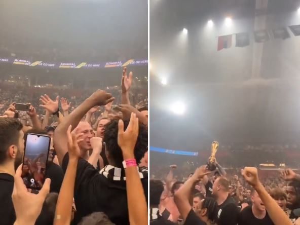 Centar crno-belih je, okružen saigračima i navijačima Partizana, poveo navijačku pesmu u kojoj se nekoliko puta uvredljivo obraća Crvenoj zvezdi i njenim navijačima! U tim trenucima se pored njega jasno vidi Dante Egzum koji ne razume reči i ne shvata uvrede na račun najvećeg rivala, kasnije se pojavljuju Matijas Lesor i Zek Ledej, a ostali srpski igrači nisu u prvom planu na snimku koji se pojavio.