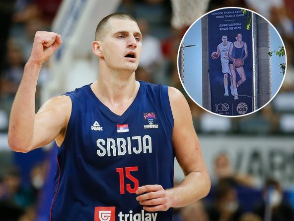 Sada je slika Miška Ražnatovića koji je slikao bilbord posvećen obeležavanju 100 godina košarke u Srbiji na kome su legendarni Radivoj Korać i Nikola Jokić pobudila nadu da aktuelni NBA šampion planira da se odazove pozivu Svetislava Pešića i da zaigra za "orlove". Pogledajte ovu objavu: