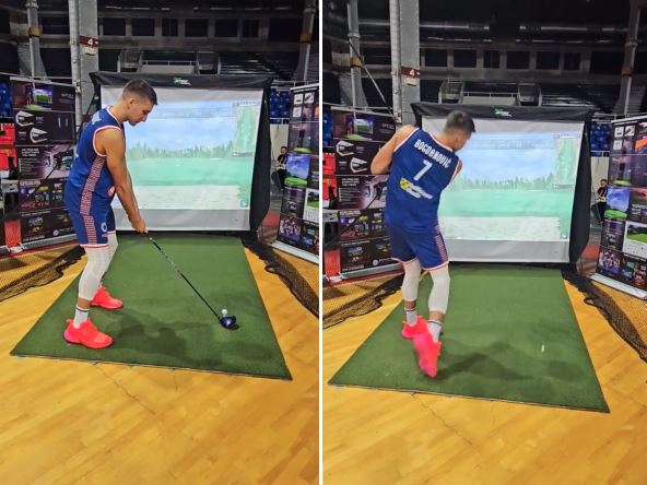 Umesto platna koje je postavljeno ispred njega i trebalo je da simulira teren za golf, Bogdan Bogdanović je pogodio nebo! Zapravo, udario je lopticu naspecifičan način i dao je poslao preko platna, a ona se nakon rikošeta odbijala ka beku Srbije i ekipi koja ga je snimala. nakon što je "jedva preživeo" ovaj udarac, Bogdan je sa širokim osmehom pogledao u kameru. Pogledajte kako je to bilo: