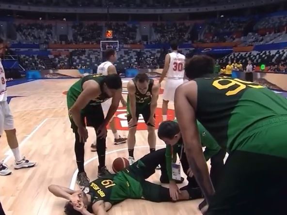 Do povrede je došlo početkom treće četvrtine u momentima kada su Brazilci imali ogromnu prednost (62:25). Posle ukradene lopte je brazilski plejmejker istrčao kontru i spremao se da ide na polaganje i tom prilikom se okliznuo. Ostao je da leži na parketu i odmah se uhvatio za glavu, lekarska ekipa utrčala je na teren, a on je potom na nosilima iznet van dvorane. Lukas Dijas, njegov saigrač, stavio je ruku na lice i u suzama je napustio klupu.