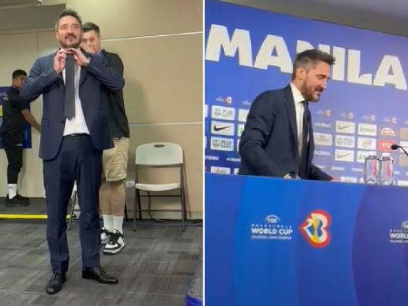 "Au koliko je ljudi ovde...Ovde je gužva kao u saobraćaju napolju (smeh). Gde je Pakjao, gde je? Opet nije došao, boji se? Recite mu da ću da dođem na kuću da se bijem sa njim! A, zbog saobraćaja ga nema...", počeo je Poceko, pa nastavio:"Čestitam ekipi Filipina, uradili su fantastičan posao, ne samo danas. Treba da budu ponosni na svoje igrače. Izgubili su sve utakmice, ali su se sjajno borili. Klarkson je velika zvezda, ali se sjajno ponašao i to me je iznenadilo. Igra sa mnogo emocija... Na prvom meču je bio mnogo tužan posle pete lične", naglasio je on. Pogledajte kako je to izgledalo: