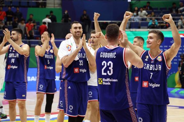 SRBIJA: Avramović, Bogdanović 23 (6/9 za tri, 9as), Davidovac 8, Dobrić 12, Gudurić 11, N. Jović 25 (5/5 za tri, 4/4 za dva), S. Jović 4 (13as, 6sk), Marinković 10, Milutinov 17 (10sk), Petrušev, Ristić 5 (7sk), Simanić
