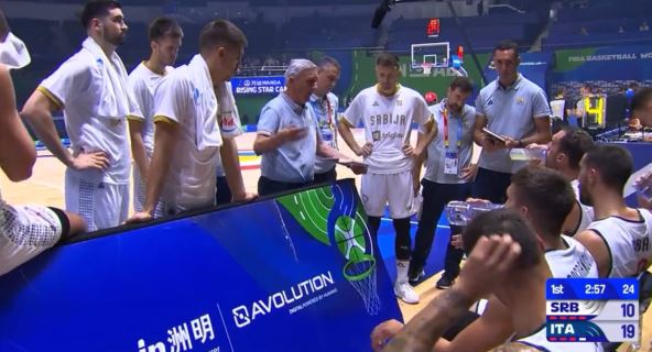 Za to vreme, njegov tim je sedeo i koncentrisao se na završnicu druge četvrtine, u kojoj su Italijani imali prednost. Fontekio, krilni košarkaš "azura", do tog trenutka ubacio 11 poena i "prošetao" se do zakucavanja i posle tog tajm-auta. On je košarkaš Jute Džez i stigao je turnir kao vođa ekipe koja je prethodnih godina stvarala ogromne probleme našoj reprezentaciji.