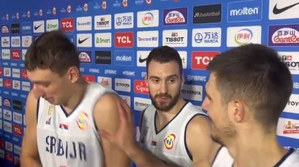 Nije košarkaš Majamija prestao da se smeje, a Marinković je nekako nastavio davanje izjave. Potom su upitani kako su ostali mirni na terenu. "Pitajte Nikolu, on je najiskusniji", nastavili su saigrači da se šale sa njim.