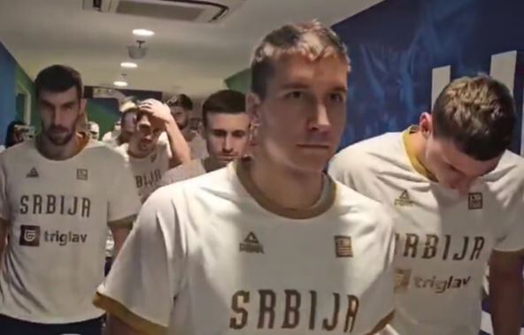 Nakon što su "overili" u tunelu pred izlazak na zagrevanje i viknuli "Srbija", naši košarkaši su potpuno fokusirani i bez ikakve eksprecije na licu izašli na parket. Koncentracija do kraja, puna usredsređenost i "krv" koja se vidi u očima. Bogdan Bogdanović je viknuo "Ko je najbolji?!", ostatak tima je odgovorio sa "Srbija", a onda su košarkaši jedan za drugim krenuli na teren.