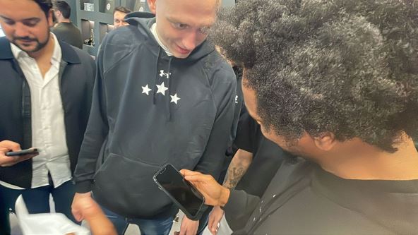 Igrači i navijači šetali su kroz prodavnicu, već su kupili dresove pojedinih igrača, a Danilo se našalio kad nisu mogli da nadju njegov dres za fotografisanje. “Moj dres niste stavili?”, upitao je Anđušić, ali je ubrzo ipak pronadjen.
