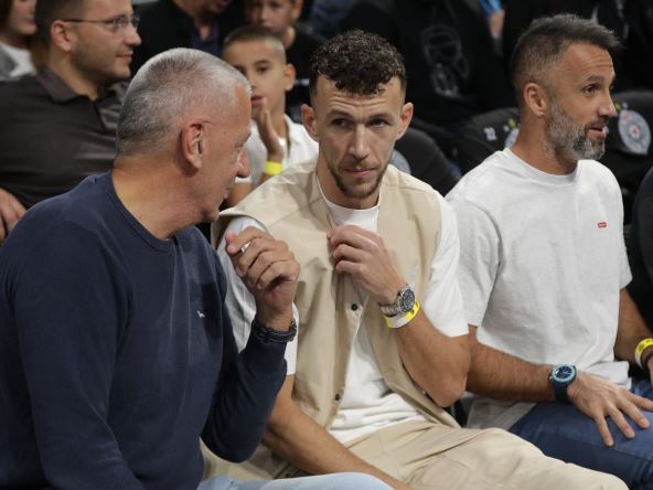 Hrvatski fudbaler Ivan Perišić došao je na derbi Partizan - Crvena zvezda Meridianbet u ponedeljak uveče, u Štark areni. On je ušao u dvoranu u pratnji srpskog stručnjaka za oporavak i pripremu sportista, Andreje Milutinovića, a nakon pozdrava sa bivšim kapitenom Partizana Novicom Veličkovićem zauzeo je svoje mesto kraj terena.
