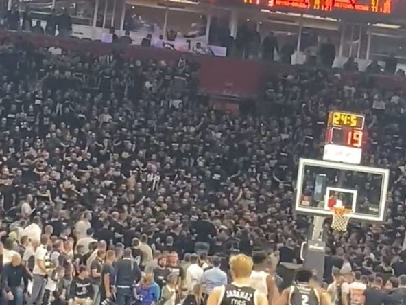 Tuča navijača Partizana na evroligšakoj utakmici. U završnici prvog poluvremena na meču sa Fenerbahčeom došlo je do fizičkog obračuna između pristalica crno-belih na tribini. Nije poznato šta se tečano dogodilo i šta je bio razlog, ali se vidi da je došlo do sukoba.