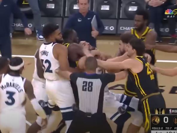 Dok je Nikola Jokić "delio lekcije" Klipersima i vodio Denver do nove pobede, za to vreme je izbila velika tuča na meču Minesote i Golden Stejta. Sve se dogodilo na samom početku susreta, dok je rezultat na semaforu bio 0:0, a vinovnici incidenta bili su Klej Tompson i Džejden Mekdenijels. Njih dvojica su počelu da se "guraju" na sredini terena, daleko od lopte, a nije trebalo dugo dok se i ostali igrači nisu uključili u gužvu!