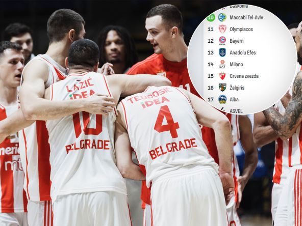 Košarkaški trener Vlade Đurović poručio je da je Crvena zvezda Meridianbet pobedom nad Makabijem (98:92) "uhvatila zadnji voz" za TOP10 Evrolige, a sada stiže još dobrih vesti za crveno-bele. Svi njeni rivali u donjem delu tabele - osim Olimpijakosa - poraženi su u 16. kolu Evrolige. Poraze su danas pisali Asvel, Alba, Žalgiris, Olimpija Milano, Efes i Bajern, što će reći da je pobeda koju je Zvezda ostvarila u hali "Aleksandar Nikolić" sada još vrednija.