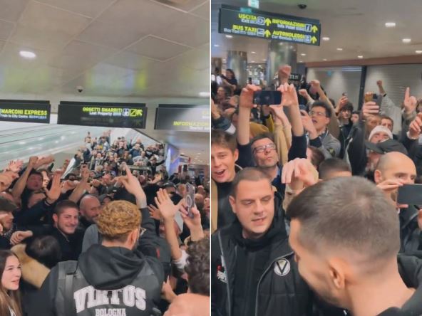Na zvaničnim profilima italijanskog kluba osvanuli su snimci sa aerodroma, gde su desetine ljudi čekale igrače Virtusa. Zajedno su pevali nakon pobede nad Partizanom, a igrači italijanskog kluba dočekani su kao heroji nakon pobedeu Beogradu, protiv tima koji bi mogao da im bude ozbiljan konkurent za poziciju u ligaškom dela sezone ili u četvrtfinalu Evrolige.