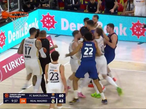 Gledali smo odličan i relativno miran "El Klasiko" sve do početka poslednje deonice kada se "opasno zakuvalo" na parketu. Sve je počelo laktom Serhija Rodrigeza, na šta je burno reagovao Nikolas Laprovitola, da bi se zbog tog duela umešali i svi ostali igrači koji su u tom trenutku bili na parketu!