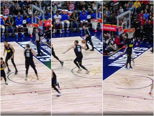 Postao je Jokić poznat po svojim "kvoterbek" dodavanjima posle defanzivnog skoka, ali je svaki put neverovatno videti kojom brzinom ih izvodi. Tako je prošla samo sekunda od kada je došao do skoka pod svojim košem, okrenuo se, video slobodnog saigrača i bez trunke razmišljanja bacio pas preko celog terena. Pogledajte: