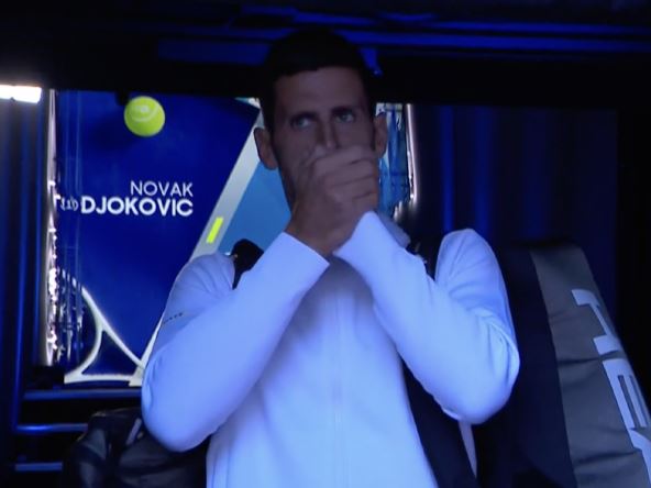 Ne samo da je Đoković bio prvobitno ljut što mora da igra u dnevnom terminu, nego i zbog toga što je meč kasnio tako da je na najjačem suncu izašao na teren jer je termometar pokazivao 30 stepeni Celzijusa. Izraz lica sve govori: