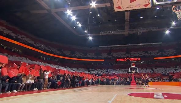 Dok su se košarkaši Zvezde i Partizana zagrevali za večiti derbi, jedna osoba za zapisničkim stolom pogođena je bananom. "Prestanite da ubacujete predmete na teren. Slušajte me upravo je jedan predmet pogodio jednu osobu za zapisničkim stolpm. Ženu, i to kora od banane. Slušajte, navijajte fer i sportski", rekao je zvanični spiker meča.