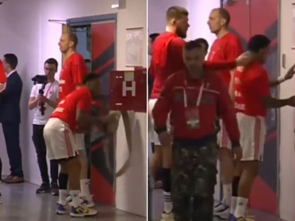 Saigrači su to gledali, većina njih se smejala i pratila šta on radi. Onda se pojavio Rokas Gedraitis i udario mu "ćušku". Nedugo posle toga mu je litvanski igrač prišao i deluje kao da ga je opomenuo i na kratko porazgovarao sa njim u vezi toga. Njih dvojica imaju posebno dobar odnos što se videlo često i na otvorenim treninzima.