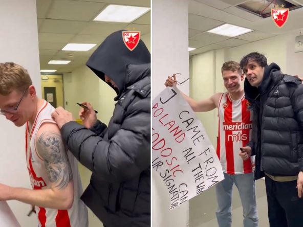 Košarkaši Crvene zvezde proaženi su od Barselone (85:76) u 25. kolu Evrolige, pa su sada daleko manje šanse da se domognu mesta među deset najboljih timova i nastave sezonu i na kraju ligaškog dela. Bolan poraz u Beogradu, protiv favorizovanog rivala, teško je pao svim navijačima Crvene zvezde, a momak koji je doputovao iz Poljske da uživo vidi magiju Miloša Teodosića dobio je poklon zbog kojeg mu je veče malo popravljeno!