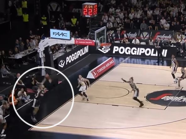 Partizan je izgubio od Virtusa u dramatičnoj završnici (88:84), a svemu tome prethodila je jedna velika greška sudija. Meč su sudili Robert Lotermozer, Saša Pukl i Tomaš Travicki i niko od njih nije primetio potez koji je napravio Isaija Kordinije na oko dva minuta pre kraja kada je uleteo na parket iz auta.