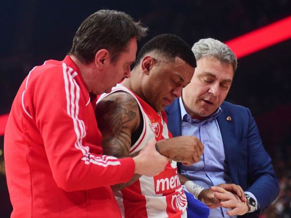 Košarkaš Crvene zvezde Meridianbet Jago Dos Santos doživeo je tešku povredu u utakmici protiv Makabija u Štark areni. Zvezda je sat pre ponoći objavila da će on ostati u bolnici, gde je utvrđeno da je slomio sinusnu kost i da je doživeo potres mozga.