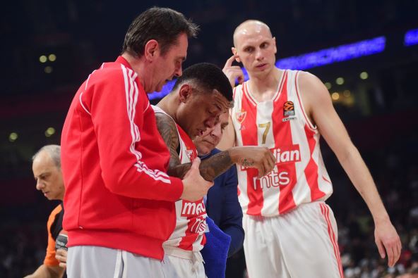 Košarkaš Crvene zvezde Meridianbet Jago Dos Santos doživeo je na utakmici protiv Makabija prelom sinusne kosti i potres mozga. Nakon što je hospitalizovan, mediji u Brazilu objavili su da će u utorak 19. marta biti operisan u Beogradu i da je procenjeno da će se oporavljati od operacije 10 do 15 dana.