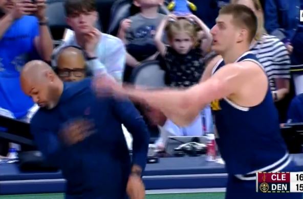 Trener Klivlenda Džej-Bi Bikerstaf nije se sklonio da Nikola Jokić izvede loptu i zbog toga je umalo dobio udarac u lice ili u telo. U toku igre on se našao tamo gde ne bi trebalo, a Jokić se nije obazirao, već je snažno bacio loptu jednom saigraču i umalo pritom zakačio trenera prortivnika.