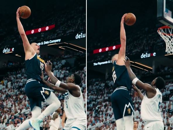 Košarkaši Denvera izjednačili su na 2:2 u polufinalnoj seriji protiv Minesote (115:107), a meč je ponovo obeležio Nikola Jokić. Srpski košarkaš postigao je 35 poena, a posebno zanimljivo bilo je njegovo zakucavanje preko najboljeg igrača protivničkog tima. Bek Minesote Entoni Edvards nije mogao da zaustavi najboljeg igrača Denvera!