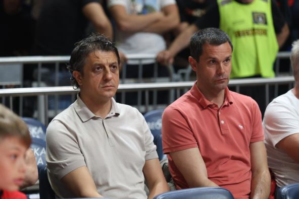 Na utakmici su i fudbaler Zvezde Uroš Spajić, bivši igrač crveno-belih Vujadin Savić, NBA košarkaš Nikola Jović čiji je otac u upravi kluba...