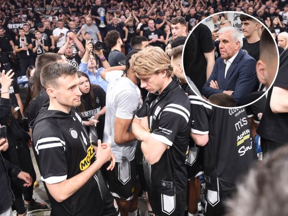 "Nemoj mi konstantno neku gospodu da izigravamo, ako oni mogu tebe da vređaju, vređaćemo i mi njih. Slušaj! Izađite, nemojte da igrate bez vaših navijača. Znači kad se ti prozivaš ne prazni se hala, a kad se neka tamo Vesna proziva, onda se prazni. Nemojte da igrate bez nas, hej!", naveo je jedan od navijača obraćajući se Željku Obradoviću. Pogledajte kako je to izgledalo: