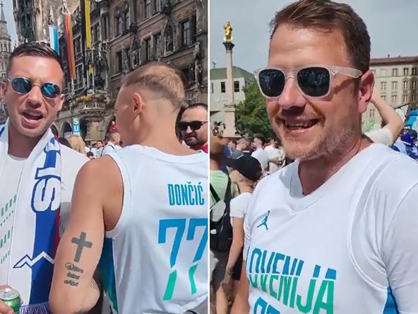 Srbi i Slovenci su se sudaraili u Minhenu na "Marijenplacu", a videli smo kako naši navijači uspevaju da budu jači, bolji i glasniji! A u celom haosu koji se tu zbivao bilo je i baš mnogo navijača u košarkaškim dresovima Slovenije i Srbije. Prava prilika da se pita ko je bolji - Jokić ili Dončić!