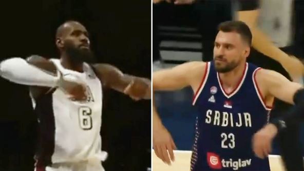 Srpski košarkaš Marko Gudurić (29) ušao je na utakmici Srbija - Amerika u duel protiv snažnog Lebrona Džejmsa (39) i tom prilikom faulirao "kralja". Amerikanac je otresao košarkaša iz Priboja, pa se "širio" pokazujući ramena nad srpskim igračem.