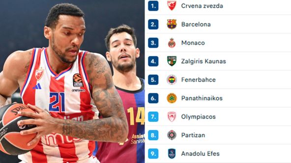 Kako izgleda tabela posle četiri kola? Zvezda je i dalje prva na tabeli sa skorom 3-1 koliko imaju još Barselona, Monako, Žalgiris i Fenerbahče, Iza su Panatinaikos,Olimpijakos, Partizan, Efes, Real, Asvel, Baskonija, Makabi i Bajern sa po 2-2, po 1-3 imaju Pariz, Alba i Armani, dok je Virtus na začelju sa 0-4.