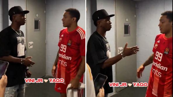 Kamere su ga uhvatile kako se pozdravlja, grli, priča i smeje se zajedno sa plejmejkerom Crvene zvezde Jagom Dos Santosom. Deluje da se njih dvojica poznaju od ranije, a Dos Santos i Vinisijus su sada u hodnicima "Vizink centra" imali prijatan i srdačan razgovor.