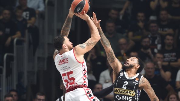 Majk Džejms je nacrtao akciju za prednost Monaka nakon ofanzivnog skoka njegovih saigrača, ali je Ife Lundberg imao odgovor za to. Potrošio je Šveđanin dvadesetak sekundi napada u kojem nikome nije dao loptu, a zatim pogodio trojku sa svoje omiljene pozicije - za prednost crno-belih na oko 75 sekundi do kraja meča u Pioniru.