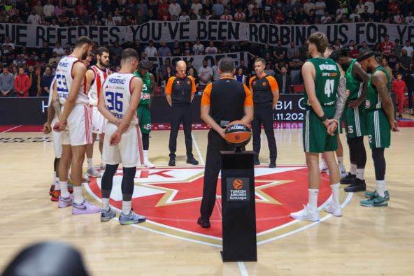 Takođe, zbog velike tragedije, navijači Crvene zvezde odlučili su da na današnjem meču ne navijaju i ne ističu transparente. Jedino su izviždali himnu Evrolige kao i sudije koje su danas delegirane, pre svega zbog vrlo lošeg suđenja na meču protiv Žalgirisa u prethodnom kolu.