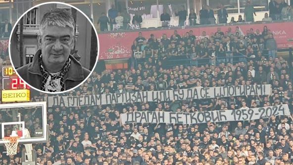 "Ili ću prestati da gledam Partizan ili ću da se šlogiram", stajalo je, a ispod je pisalo: Dragan Ćetković 1959 - 2024. Pogledajte transparent navijača Partizana posvećen tragično preminulom navijaču: