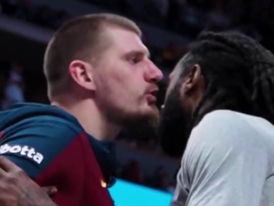 Nikola Jokić i američki košarkaš Deandre Džordan već godinama se pozdravljaju po srpski, sa tri poljupca. I ovog puta to je bio slučaj, a Denver je zabeležio trenutak i tim kratkim snimkom poželeo laku noć svojim navijačima. Pogledajte kako je to izgledalo: