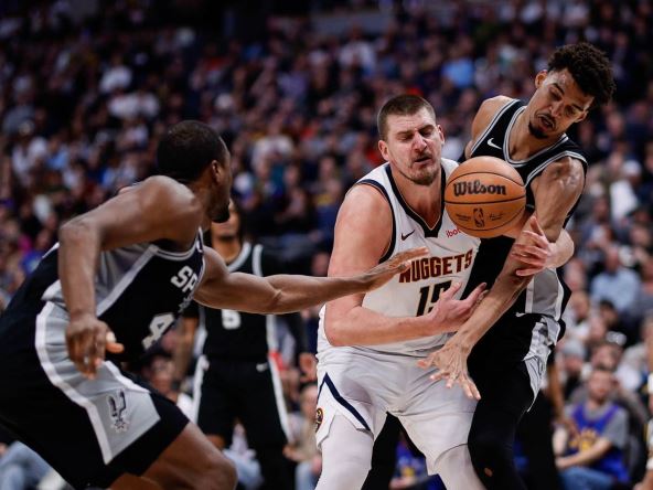 Srpski centar je pri rezultatu 111:110 za San Antonio dobio loptu da reši situaciju jedan na jedan sa Viktorom Vembanjamom, a dok je gradio svoju poziciju ispod koša prišao je još jedan igrač San Antonija. To je Jokić video kao šansu da izbaci loptu otvorenom igraču na šut za tri poena, ali je Devin Vasel to video i ukrao je loptu! Pogledajte tu situaciju: