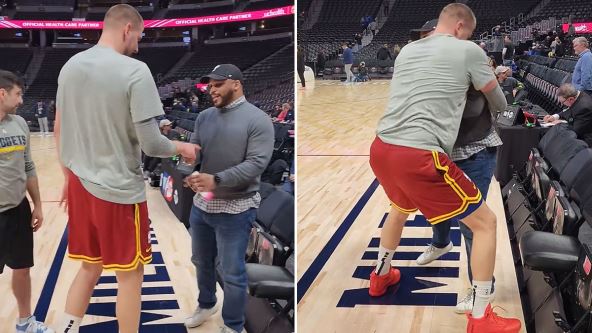 Najbolji košarkaš na svetu Nikola Jokić odigrao je još jedan neverovatan meč u noći između utorka i srede, a nakon velike pobede koju je doneo Denveru sreo je starog prijatelja. Prvo su pomalo hladno rukovali srpski centar i nekadašnji američki plejmejker Džamir Nelson, a onda je Jokić srdačno zagrlio i "protresao" organizatora igre koji ga je pre desetak godina dočekao u Denveru.