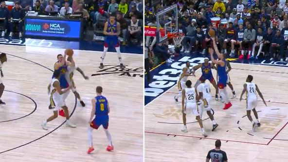 Jokić je loptu dobio daleko od koša, ali ni to što je bio leđima okrenut nije pomoglo Nju Orleansu. Napravio je okret, zatim krenuo ka reketu i na kraju postigao poene iako su uradili sve što mogu da ga spreče. Nikola Jokić prvo je udvojen, a zatim je Nju Orleans tako skupio odbranu da je srpski košarkaš u reketu bio sam protiv petorice rivala. I uspeo je da pogodi. Pogledajte: